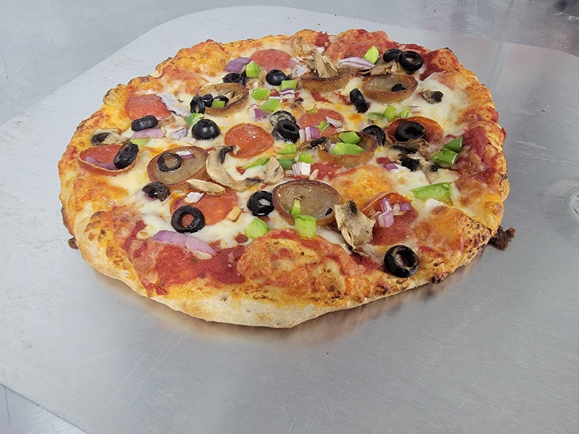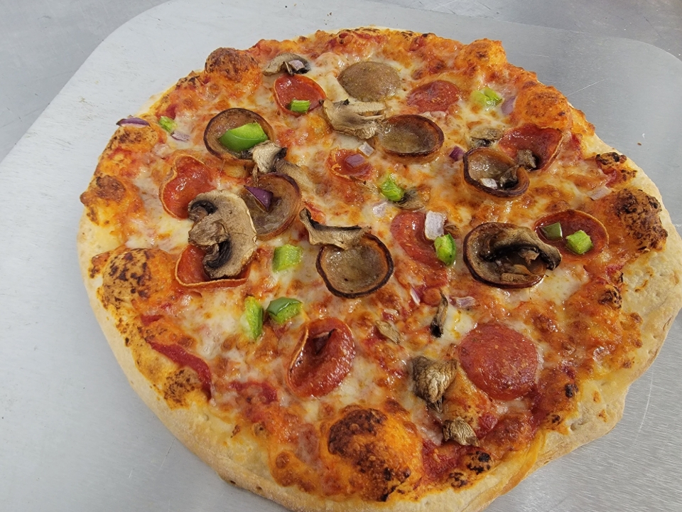 Pepperoni, Sausage, Mushrooms, Peppers, Onion, Mozzarella