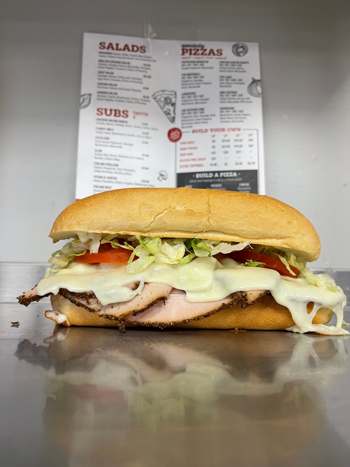 Turkey, Swiss, Tomato, Lettuce, Mushrooms, Mayo.